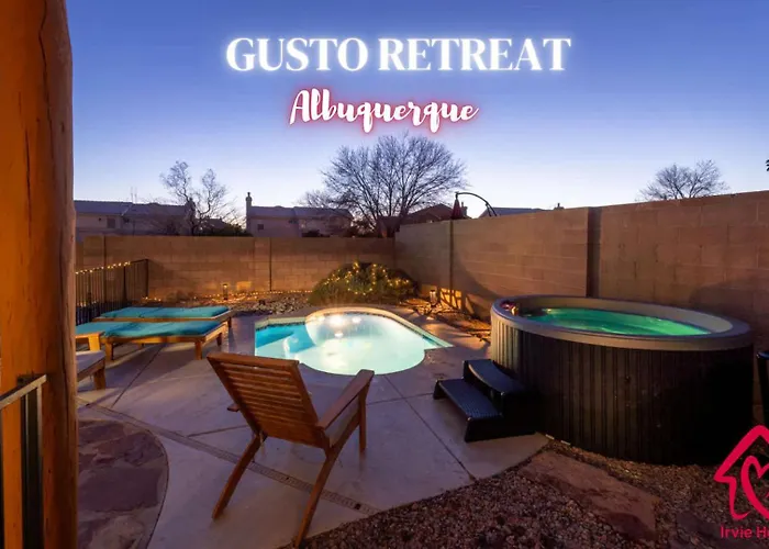 Featuring a private swimming pool for guests' relaxation, the 3-bedroom Gusto Retreat Modern Serenity - An Irvie Home Albuquerque is located only 1.5 km from the Piedras Marcadas Petroglyph Site|the Piedras Marcadas Canyon. Featuring access to a patio, this property is located approximately 10 minutes' drive from the Boca Negra Canyon.